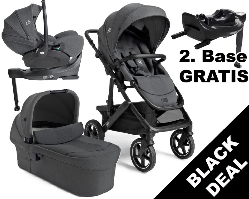 Joie Vinca Ebony Set 5in1 - inklusive Sportsitz, Babywanne Ramble XL + Babyschale i-Level Pro + 2x i-Base Encore